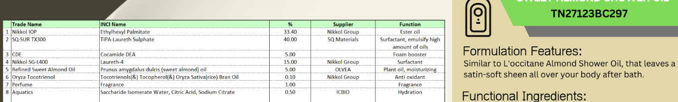 Shower oil that transform from a hydrating oil into a silky-soft foam upon lather, leaving your skin feeling soft and moisturized. Blend with natural moisturizing agent and plant oil soften skin and keep hydrated after shower