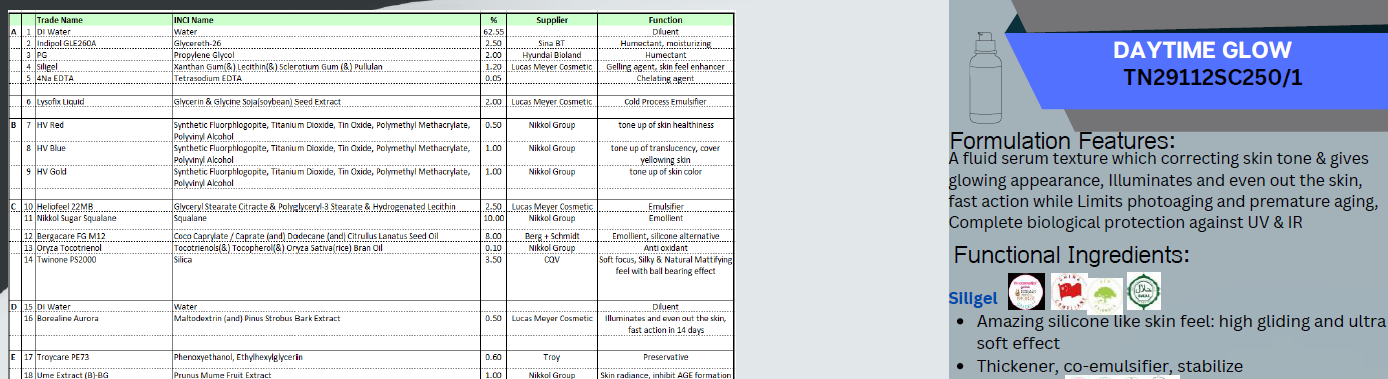 A fluid serum texture which correcting skin tone & gives glowing appearance, Illuminates and even out the skin, fast action while limits photoaging and premature aging, complete biological protection against UV & IR