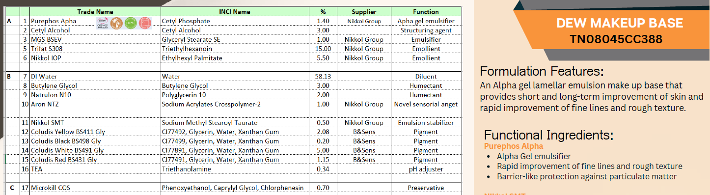 An Alpha gel lamellar emulsion make up base that provides short and long-term improvement of skin and rapid improvement of fine lines and rough texture.