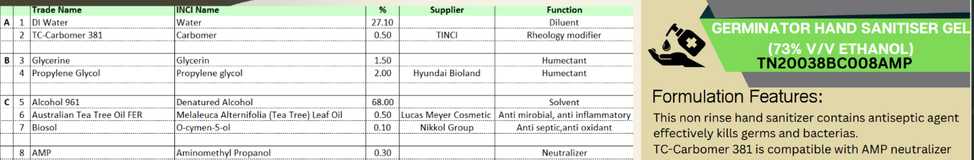 This non rinse hand sanitizer contains antiseptic agent effectively kills germs and bacterias. TC-Carbomer 381 is compatibile in hydroalcoholic solution with AMP neutralizer