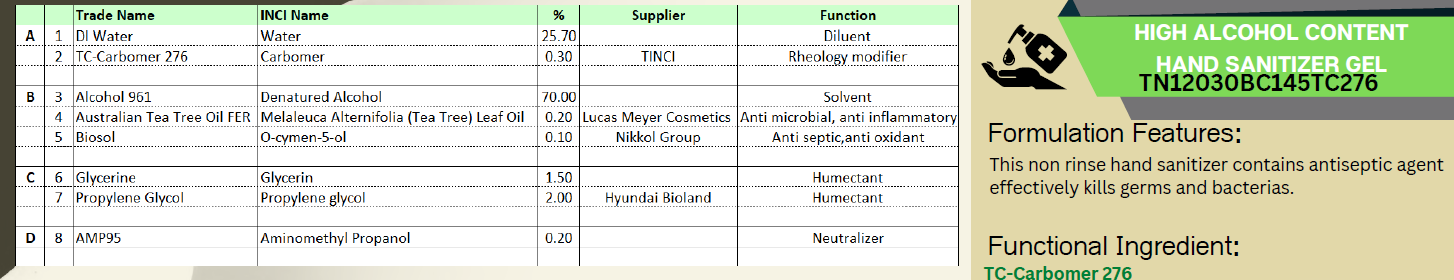 Formulation No: TN12030BC145TC276