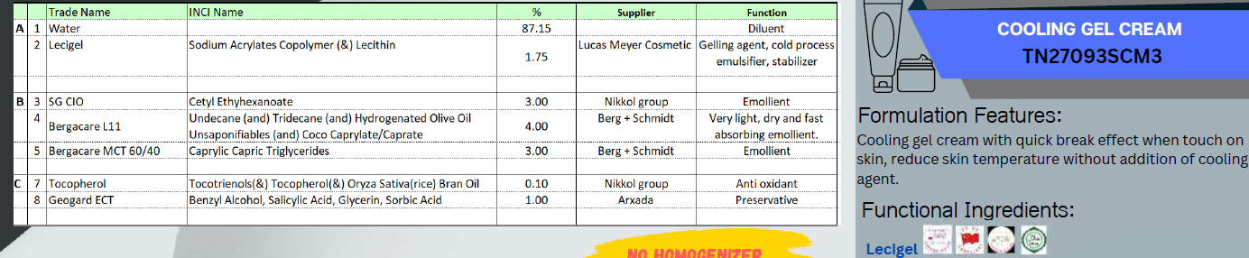 Cooling gel cream with quick break effect when touch on skin, reduce skin temperature without addition of cooling agent.