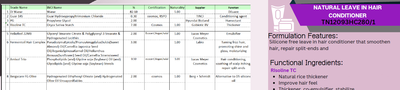 Naturality of formulation~97%, stay on conditioner with desired smoothness. Cuticles scales are less visible and the hair is repaired from root to end, less split-ended hair