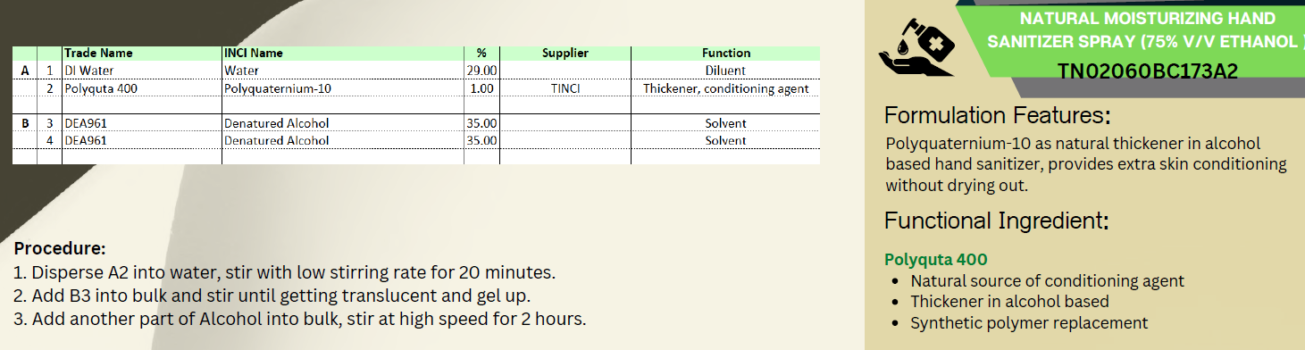 Conditioning agent that compatible with high alcohol content and cationic antibacterial agent provides good anti bacterial and moisturizing properities