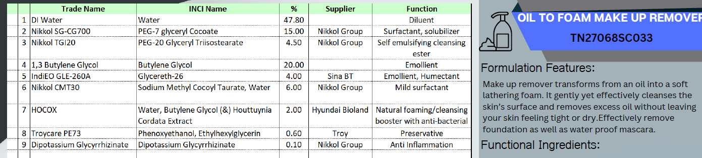 Make up remover transforms from an oil into a soft lathering foam. It gently yet effectively cleanses the skin’s surface and removes excess oil without leaving your skin feeling tight or dry. Effectively remove foundation as well as waterproof mascara. With Dipotassium Glycyrrhizinate protects skin barrier and prevent hypersensitization happened