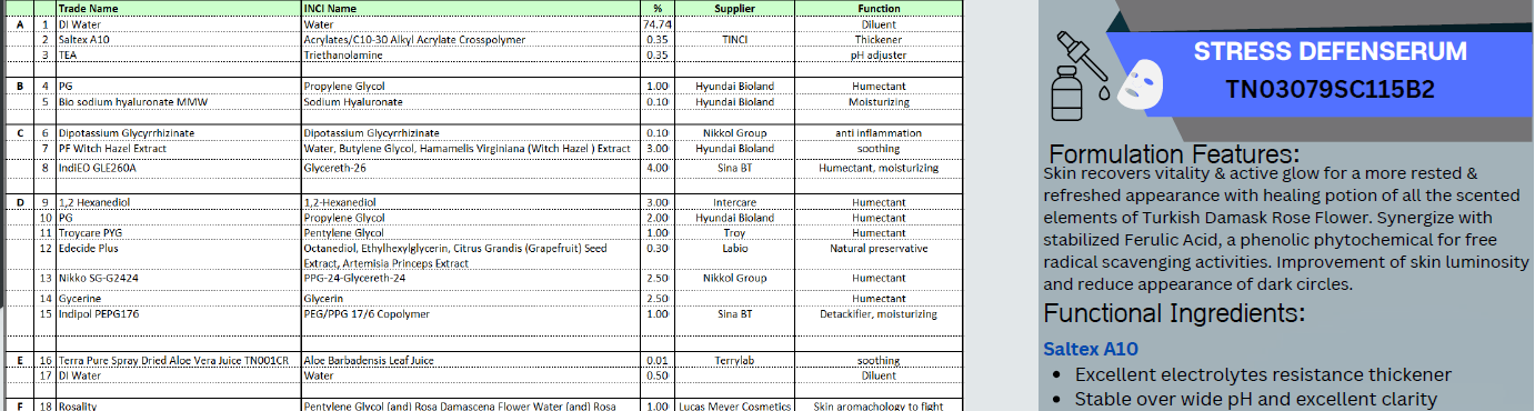 Skin recovers vitality & active glow for a more rested & refreshed appearance with healing potion of all the scented elements of Turkish Damask Rose Flower. Synergize with stabilized Ferulic Acid, a phenolic phytochemical for free radical scavenging activities. Improvement of skin luminosity and reduce appearance of dark circles. Skin aromachology to fight against the Stressosphere