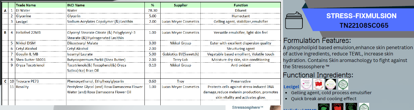 Skin aromachology concept of protects cells against stress and exposome environment, promotes skin vitality and activates glow for more rested and refreshed appearance in 7 days! Phospholipid based emulsion,enhance skin penetration of active ingredients, reduce TEWL, increase skin hydration. for young skin with aging preventive action
