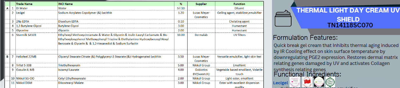 Quick break gel cream that Inhibits thermal aging induced by IR. Cooling effect on skin surface temperature by downregulating PGE2 expression. Restores dermal matrix relating genes damaged by UV and activates Collagen synthesis relating genes