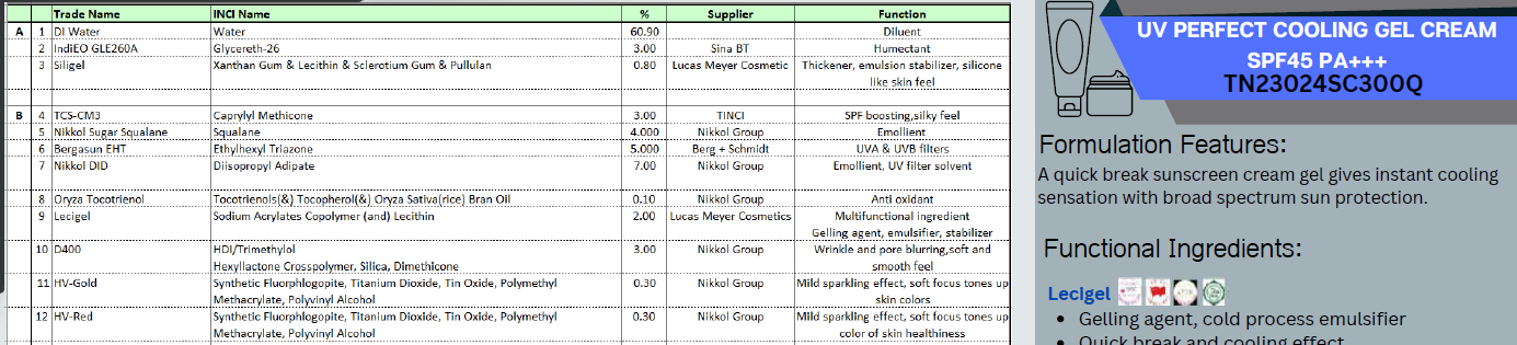 Warm ProcessA light weight chemical sunscreen cream gel with quick break effect gives instant cooling sensation with broad spectrum sun protection. In addition of wrinkle and pore blurring,soft and smooth feel while tone up skin complexion