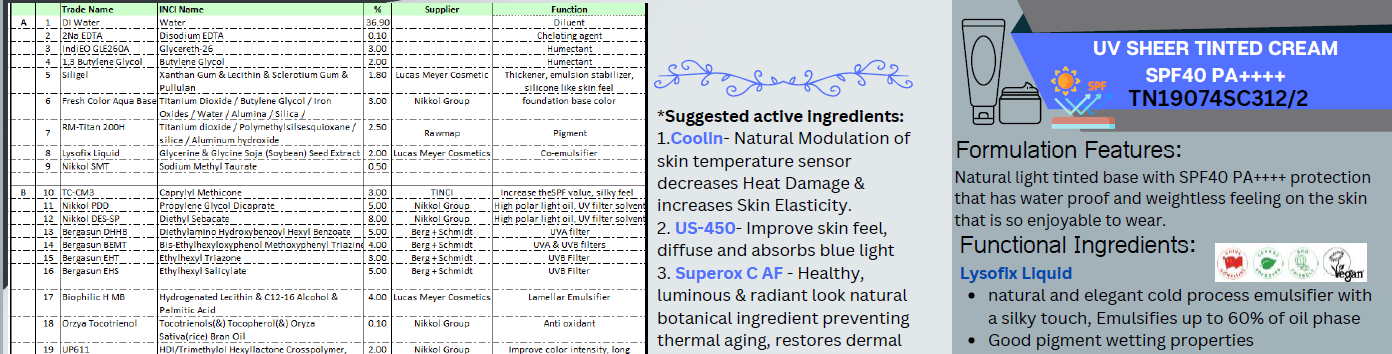 Natural light tinted base with SPF40 PA++++ protection that has water proof and weightless feeling on the skin that is so enjoyable to wear.